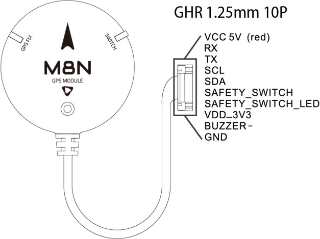 <table data-header-hidden data-full-width="true"><thead><tr><th></th><th></th></tr></thead><tbody><tr><td><p><strong>Stanard</strong> (JST GHR1.25mm 10</p><p>pin cable)<strong>:</strong></p><p>This JST GH 10Pin connector can be use d on Pixhawk Series 10pin“GPS Module” or "GPS1" input port.</p></td><td><img src="https://2367252986-files.gitbook.io/~/files/v0/b/gitbook-x-prod.appspot.com/o/spaces%2FLIgtGDAvVGkCKGOJb1bR%2Fuploads%2FtQT7VRwIqnJta4LLgNVo%2F2?alt=media" alt="" data-size="original"></td></tr><tr><td><p><strong>Secondary</strong> (JST GHR1.25m m 6pin cable)<strong>：</strong></p><p>This JST GH 6Pin connector can be used on Pixhawk Series 6pin“UART &#x26; I2C”or " GPS2" input port as secondary GPS.</p></td><td><img src="https://2367252986-files.gitbook.io/~/files/v0/b/gitbook-x-prod.appspot.com/o/spaces%2FLIgtGDAvVGkCKGOJb1bR%2Fuploads%2FfD367Vbxv7OgRtCVYykG%2F4?alt=media" alt="" data-size="original"></td></tr><tr><td><p><strong>For Pix32/Pixhawk1/2.4.6/2.4.8</strong> (Molex1.25mm 6pin &#x26; 4pin &#x26;3pin cable)<strong>:</strong></p><p>These Molex connectors are for Pix32 "Switch", "GPS", and "I2C" input ports.</p></td><td><img src="https://2367252986-files.gitbook.io/~/files/v0/b/gitbook-x-prod.appspot.com/o/spaces%2FLIgtGDAvVGkCKGOJb1bR%2Fuploads%2F11TvDATYZ4o27XjyLwzK%2F3?alt=media" alt="" data-size="original"></td></tr></tbody></table>